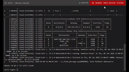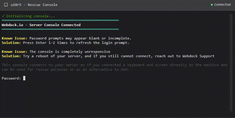 The Rescue Console is designed to give you greater control, confidence, and peace of mind when managing your servers — especially during those critical moments when every second counts. Instead of waiting on support or being blocked by networking issues, you always have a direct line into your VPS.